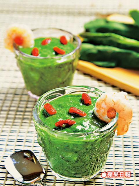 2.燒熱鑊爆薑茸,加入菠菜,灒米酒,煮至軟身後盛起,用攪拌器打碎備用。