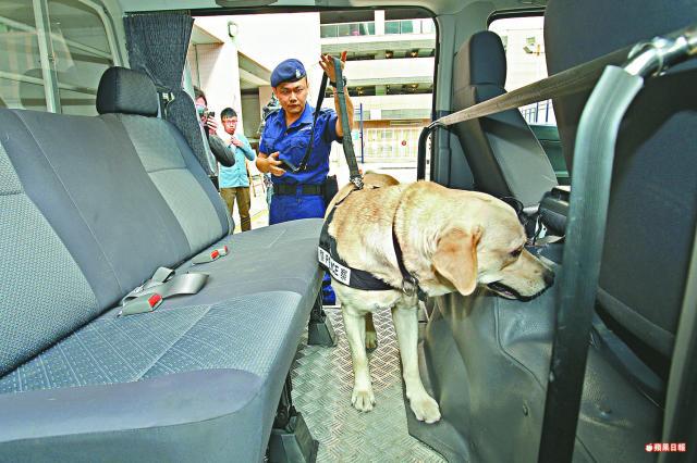 「靜態緝毒犬小隊」由16隻拉布拉多尋回犬組成,4隻駐守總部,其餘12隻分派到警隊各部門執勤,包括在交通部緝毒的Barry與Shadow。警方昨安排查車示範,Barry跳上客貨車後四處嗅,約兩至三分鐘便找到預先藏在暗格的毒品。Shadow就輪流靠近三名可疑司機,快速辨識有藏毒的人隨即坐下,眼盯領犬員示意有發現。