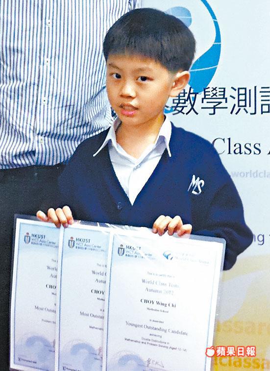另一名循道學校四年級生蔡榮摯以9歲之齡越級挑戰中學組,同時獲得「越級挑戰最佳表現獎」及中學組「最年輕雙優生」。他表示比賽題目的程度比學校的艱深很多,但自己喜歡解難,平時每日會花一至兩小時計數。