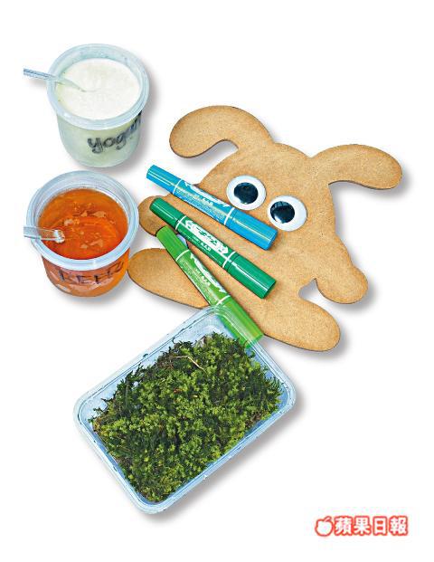 乾青苔、乳酪、啤酒、硬紙板、膠眼睛、油性筆
