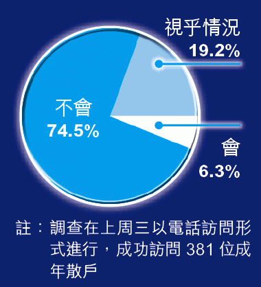 本報上周三以電話成功訪問381位成年散戶,當中僅有兩成(78位)表示知道港交所(388)今晚起將推出夜期服務,65%(246位)對新產品態度中性,不贊成亦不反對,惟表明會參與買賣的人數,只有寥寥可數的24人或6.3%,連同會視乎情況參與買賣的比例,合共則有約26%(97位)。
