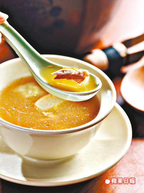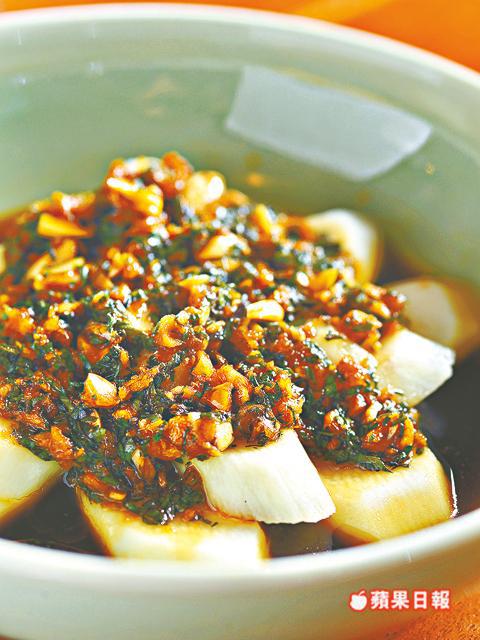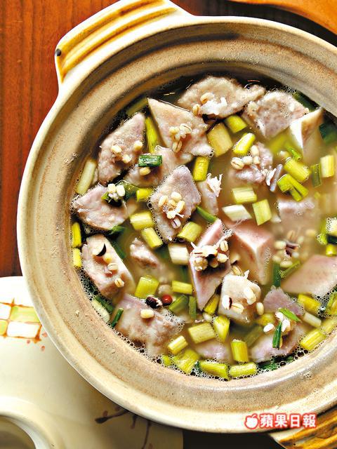 常言道「春氣之應,養生之道也」,尤其春天濕氣極重,更要注意飲食調養,以保健康。中醫師彭明慧認為,五臟六腑皆可困濕,但普遍來說,脾虛濕重最常見,建議可多食薏米、扁豆、老黃瓜等祛濕食物。不過,這些住家食材較少能在餐廳品嚐,大概因為藥味重,不怎美味之故,但估不到現在酒店都有得食住家菜!沙田凱悅酒店內的沙田18提供東莞傳統農家菜,無論是前菜、主菜及甜品均以健脾祛濕食材烹調,其中老黃瓜老火湯,加入扁豆及鮮荷葉,有健脾利水之效,老黃瓜煲得軟爛,很清甜。鮮淮山較常作煲湯之用,令人驚喜是,可作涼拌菜,用新鮮紫蘇葉、蒜頭、薑絲等醃浸一日,拌以爽口的鮮淮山,味道酸酸甜甜,帶淡淡的苦澀味。大廚倪師傅說,「我哋蒸大閘蟹時底層通常會鋪上紫蘇葉,有解毒祛濕功效,配合健脾胃嘅鮮淮山,好適合呢個季節食用。」彭明慧亦指,淮山有健脾補肺、益胃補腎的功效。