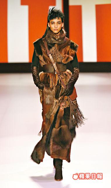 已屆甲子之年的鬼才設計師Jean Paul Gaultier,傾盡天馬行空的創作高峯已回到平穩,「老頑童」於今個秋冬,在中世紀搖滾的戲軌下,以80、90年代塑造無數的iconic設計為藍圖,注入contempoary twist,順理成章成為他的新作。在他的創作寶庫要選經典中的經典,麥當娜的成名cone bra必定入選,JPG以皮革、taffeta衣料、窩釘及縫線重新詮釋而成,有點盔甲輪廓的bustier top及短身外套,配襯貼身的皮褲及maxi length雪紡裙。Trench是另一個熟悉的元素,跨張的領口細節及保留了80年代的寬膊線條,或蝙蝠翼輪廓袖設計的大衣。