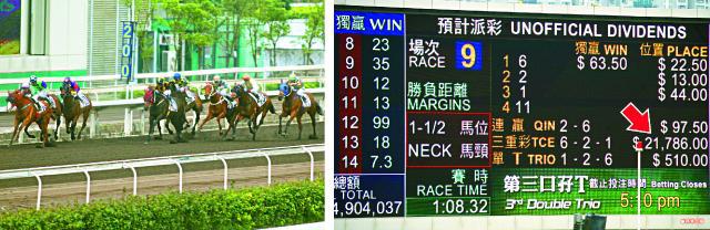 今季閘前大幅落飛得手最經典例子是去年11月10日「日日發」,最後5分鐘獨贏由14倍急跌至4.7倍開跑,最後輕鬆取勝。另外3月6日「深智能業」閘前由25倍落飛至8.4倍,跌幅逾六成下勝出。