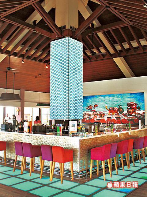 最近度假村換上海洋新裝,無論身處任何位置,透藍海洋靚景從不缺,翻新了的 Tingara Bar,由法國室內設計師Delphine Leon設計,面對川平灣無敵海景,吧台地板刻意以藍燈呼應,佈景打上島嶼影像,加上每日不同的招牌雞尾酒叫人醉在海洋中。調酒師以石垣島名產調製雞尾酒,當中Himawari以沖繩燒酒Awamori混合桃酒和芒果汁,Cariuo Ume又把梅酒加橙汁,清新易入口。