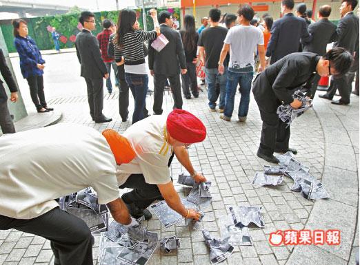 抗議期間,酒店派出兩名侍應生,拿着兩箱樽裝水派發給示威者及記者。示威者拒收,還把示威的傳單塞給侍應生。當示威者離開後,酒店保安及職員第一時間撕毀貼在牆上李氏父子的傳單。