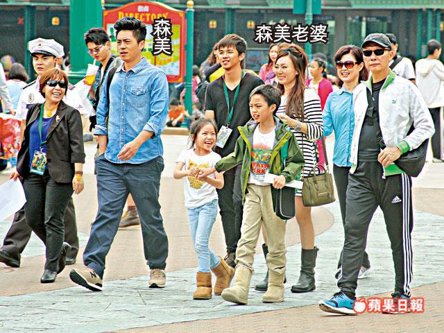 森美平日很少跟圈外老婆一齊露面,昨日他罕有帶老婆和仔女遊迪士尼。陳芷菁和老公玩完過山車後,就用滴露清潔雙手,十分注重衞生。方中信和莫可欣就帶寶貝女來玩,而洪天明因老婆周家蔚不在港,惟有黐老友吳家樂一家大細解悶;甚至前輩級的姜大偉和老婆李琳琳,亦跟女婿曹永廉和外孫天倫樂。