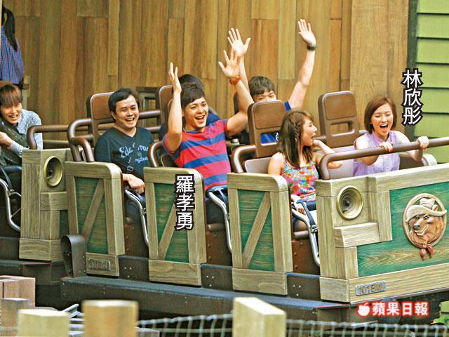 緋聞男女羅孝勇和林欣彤昨相約巨聲幫同遊迪士尼,他們先闖灰熊山谷玩極速礦車,有男友陪伴的林欣彤笑得好燦爛。黃家強全家出動狂歡,一時跟日籍老婆拖手晒恩愛,一時陪大仔排隊玩噴水柱顯父愛,其間有人打尖,家強即禮貌勸止。張繼聰就抱囝囝張瞻跟親友遊樂園,但不見老婆謝安琪。蘇志威和劉小慧帶兩個女來玩,雷頌德亦抱病陪妻兒到場。樂隊Dear Jane主音跟港姐女友楊洛婷拖手漫步,鍾舒漫、吳浩康和林一峰等就各自玩樂。