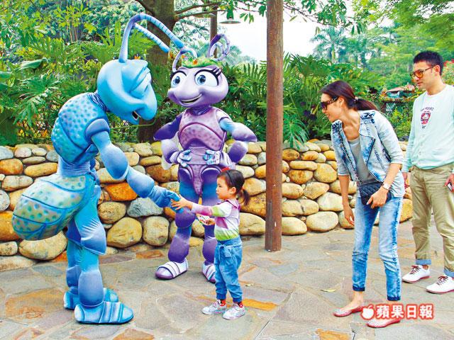 郭可盈則與老公林文龍和3歲囡囡林天若三人行晒溫馨,可盈在園內看到卡通人物都有細心向囡囡解釋,林文龍則鼓勵囡囡跟《蟲蟲特工隊》卡通人物合照留念。