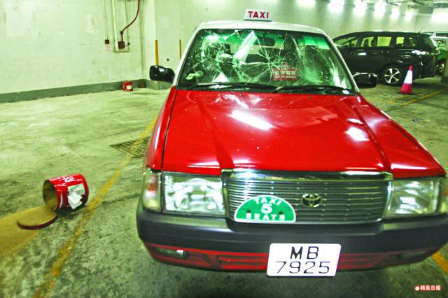 前晚11時許,有保安員在停車場內巡邏時,先後發現五輛私家車及兩輛的士,被人扑爆擋風玻璃及撞凹車頭冚,地上散落滅火筒及滅火沙桶,報警求助。