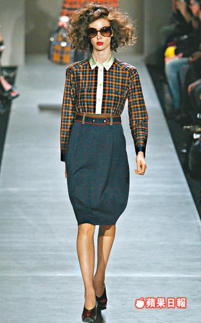 【紐約直擊】向來喜歡遊走懷舊的美國設計師Marc Jacobs,早前在美國紐約時裝周中展示副線Marc by Marc Jacobs的2013秋冬裝,今次以70年代為靈感,模特兒以爆炸髮型配上紅唇,來季新裝就有不少retro的幾何圖案,新色偏向暗藍和暗紅色,英倫格子也納入設計之中,高腰的pencil skirt和圖案及膝連身裙,活像70年代的打工女郎。