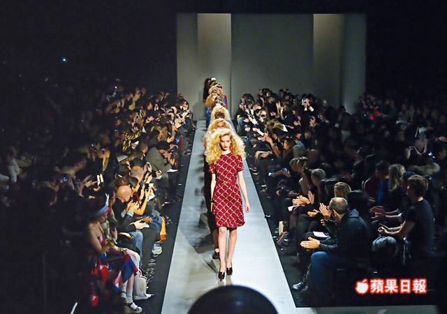 為Marc by Marc Jacobs行騷的模特兒以誇張的爆炸頭亮相,配上烈燄紅唇,身穿一套套well-polished收身冬裝,與上季的colourful及youthful的印象對比極大。今次秋冬新裝,MMJ的女孩彷彿長大了,開始投入社會工作,以70年代為依歸,高腰的pencil skirt配上收身恤衫或是floral pattern的turtleneck,或是圓領的幾何圖案連身裙等,充滿復古意味。