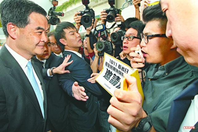 城大上周一舉行學術樓三啟用典禮,邀請特首兼大學校監梁振英任嘉賓。一批學生到場示威,校方如臨大敵,保安抬走示威者;會場內記者被保安以外面「好危險」為由,一度被禁外出採訪。一名示威者和一名保安受傷,梁振英在儀式後經後門離開。城大備受各方狠批,被形容是翻版港大「818事件」。