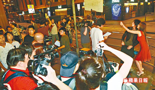 無綫最近黃金時段收視跌,不得不諗計救亡,難怪急召福將黃子華回巢拍新劇《My盛Lady》,仲日夜趕工,有傳提早至今年推出救收視!子華、徐子珊同王君馨前晚喺中環拍攝新劇外景,劇情講子華同子珊教君馨拍拖,着上貼身裙嘅子珊chok樣,佢仲同子華攬頭攬頸嘟嘴合照,港女上身纏住子華。不過因收音問題,工作人員喺眾目睽睽下喺子珊裙底整收音咪,吸引班內地自由行男士眼甘甘。