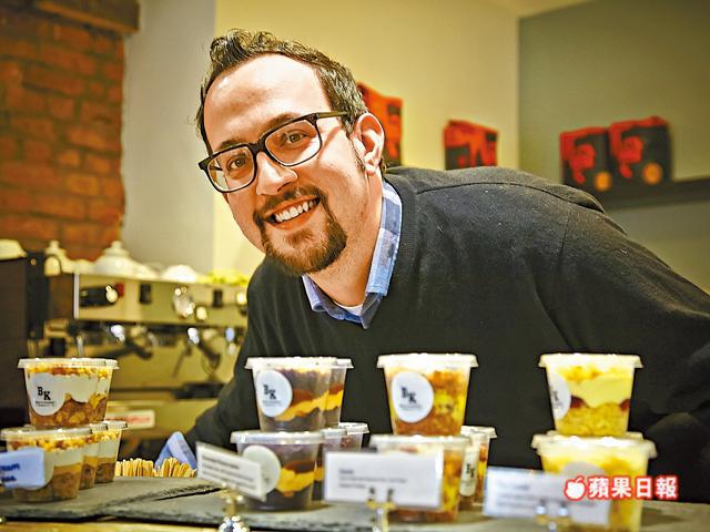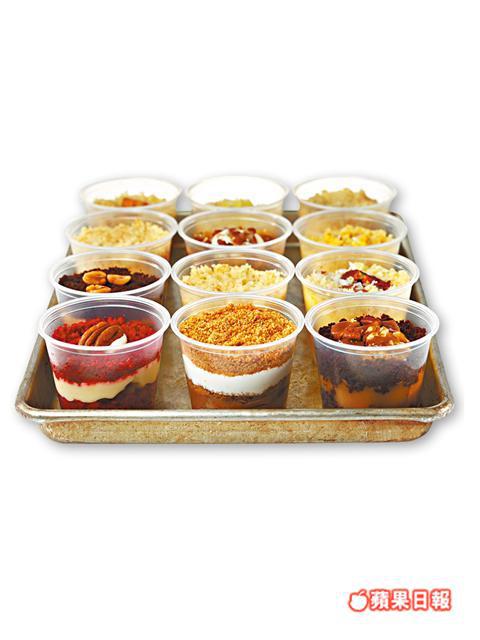 Cake-cup原本是網上生意,Billy愛整餅,就跟兩位拍檔接些婚禮及派對到會來做。他們的蛋糕,有芭菲或英式Trifle的影子,將一堆材料倒入威士忌杯,保持質感濕潤軟滑。打出小名氣後,時尚雜誌來拍照,Banana Republic也幫襯。有市場,負責整餅的Billy,就把心一橫辭去地產工作,專心一致做餅佬,感覺係「好正,好開心!」做街客,他們用膠杯仔代替威士忌杯,長備8至10款口味,如朱古力蛋糕底溝花生醬、呍呢拿蛋糕底配紅苺醬及白朱古力Mousse。知你心大心細,又推出細碼拼盤版,一次過試勻多種口味。