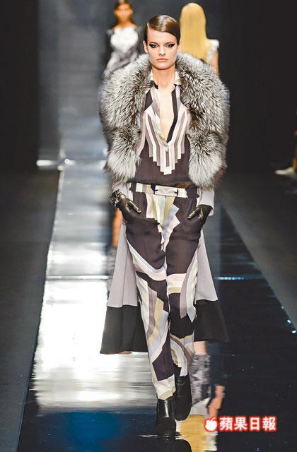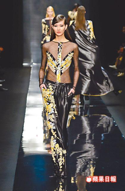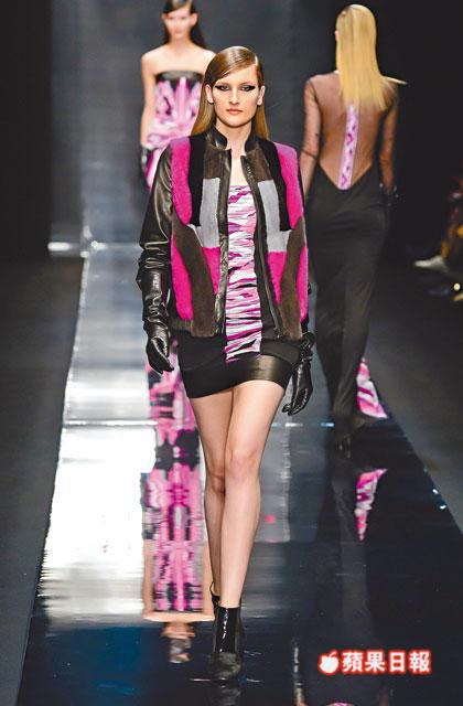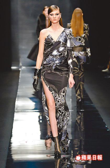 設計輪廓以feminine glamour出發,以silk jersey衣料及性感的body conscious連身裙為骨幹,當中有墊膊細節的連身裙、有日本藝伎和服啟發的wrapped dress、低領位的貼身剪裁jumpsuits、到floor length的刺繡圖案tube gowns等。此外,Raffaele Borriello更善用衣料質感的細節,如在鎖匙元素的silk jersey上,加添亮漆質感,在機車外套注入fur patchwork細節、傳統的風衣以誇張比例領口示人,以及鑲滿swarovski水晶embellishment cape等等,都彰顯性感與搖滾平衡發展的華麗個性。
