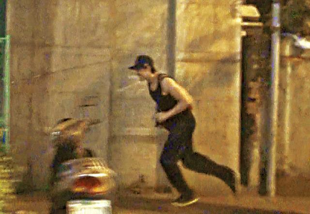 影咗5分鐘錦榮繼續開車,喺台北市兜咗差唔多一個圈,去到建國南路,喺燈位停低,奇怪嘅事發生咗,原本揸車嘅錦榮,忽然從前座乘客位開門出嚟。睇嚟錦榮喺借停燈嘅時間跨過女朋友跳車逃走。佢落車之後見記者仲喺度影相,佢忽然發力狂奔,邊跑邊笑逃去無蹤,Jolin被撞破好事最後自己揸車返屋企。