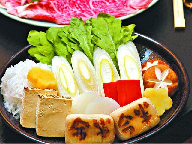 牛肉鋤燒的材料極簡單,一大盤如美玉的牛肉、由指定農場栽種的大葱、菜、冬菇、炙燒過的豆腐、蒟蒻和年糕。穿了整齊和服的女侍應用小片牛的脂肪在那隻從日本帶來的平鐵鍋上塗抹,這鍋子是岩手縣最聞名、出產最優質南部鐵器的老店「岩鑄」鑄造的,今半開業時就已託岩鑄鑄造一個專用模子,到今日店內採用的鐵鍋都是由這模子造出來的。