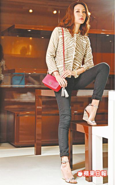 姚書軼經常以色彩鮮艷的手袋襯素色打扮,簡單快捷地添上生氣:「鍾意示範細小嘅紅色袋,我着開黑白灰色衫,紅色好易襯,size適中,孭上膊等我舒舒服服咁去街,黃色trench coat都令人好開心,紅、黃色好有夏日感覺。」