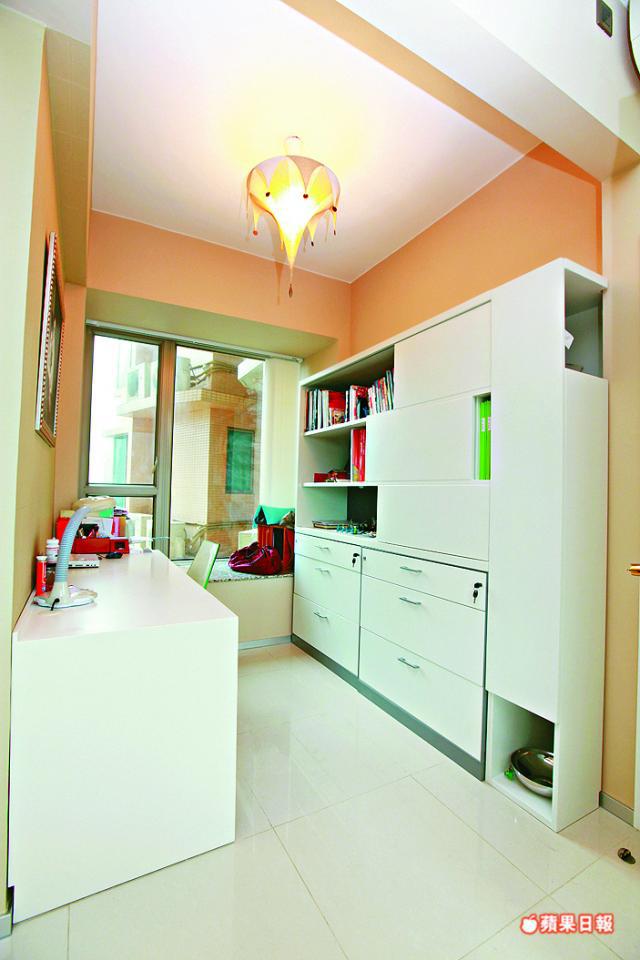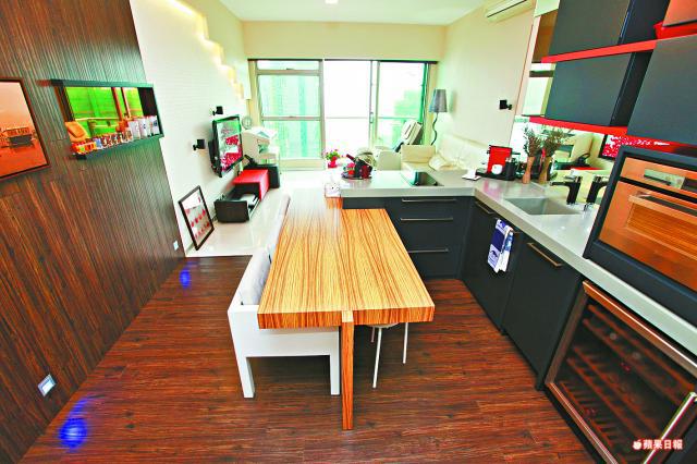 由於業主熱愛下廚,所以特別將飯廳變身開放式廚房,置有焗爐及酒櫃等,另加設吧枱,是平日用膳的地方。至於單位原裝的廚房,則用來烹調油煙較多的食物。業主四年前一手買入單位,花約50餘萬元裝修,入牆家具款式不俗,浴室保留原裝,單位內櫳亦新淨。