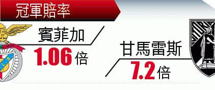 甘馬雷斯前季曾殺入葡盃決賽,可惜以2:6慘負給波圖;如今他們能於3年內第2次打決賽,前鋒祖奧列比路就希望能創造歷史,為球隊首次登上冠軍寶座。無疑他們有個別球員是頗有質素,例如是隊長亞歷斯、中場泰亞高洛迪古斯及前鋒艾美度巴爾迪等,但整體實力與粒粒皆星的賓菲加仍有一段距離。賓菲加已輸掉歐霸盃及葡超,故今鬥甘馬雷斯定會打醒十二分精神,務求把冠軍獎盃搶到手,必捧[-1]「主勝」。賽制方面,若90分鐘內打成平手需加時30分鐘,再和就互射12碼決勝。文:青蛙仔