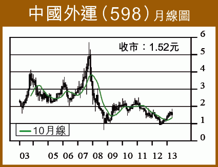 3)中外運2013年預期PB僅0.48倍,海豐為1.29倍,中外運航運為0.45倍。