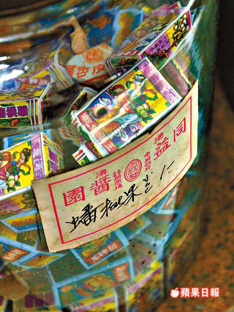 蟠桃菓其實是北杏做的,曬乾後變黑色。夾在透明玻璃紙中,黏答答的,幼時我經常以為藏着濕烏蠅,總要內外仔細檢查一番,才敢放進口,「是天然醃製和曬乾水果才會變黑,你看我們家的芒果乾,也是黑黑的。」負責人呂小姐說,言下之意大概是,東西太漂亮未必天然。