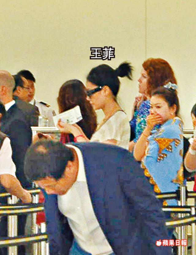 此外,昨日中午12時許那英現身機場搭飛機離港,到3時半王菲跟李亞鵬亦到達,不過兩夫妻一前一後相隔5個身位入閘,戴着墨鏡的王菲一馬當先,對鏡頭顯得抗拒。反而踢拖尾隨的李亞鵬笑笑口跟記者打招呼。據知,他們將前往洛杉磯探望在當地就讀的女兒竇靖童。