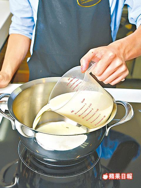 1.牛奶、糖和鹽放入鍋以中火加熱。