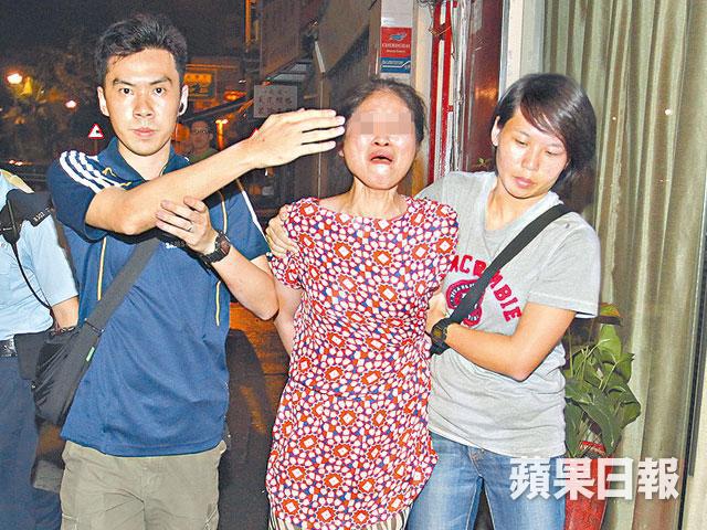 被捕女疑犯42歲姓盧,身穿橙藍鮮色碎花點上衣,挽着紅色手袋,警方正調查她的精神狀況。