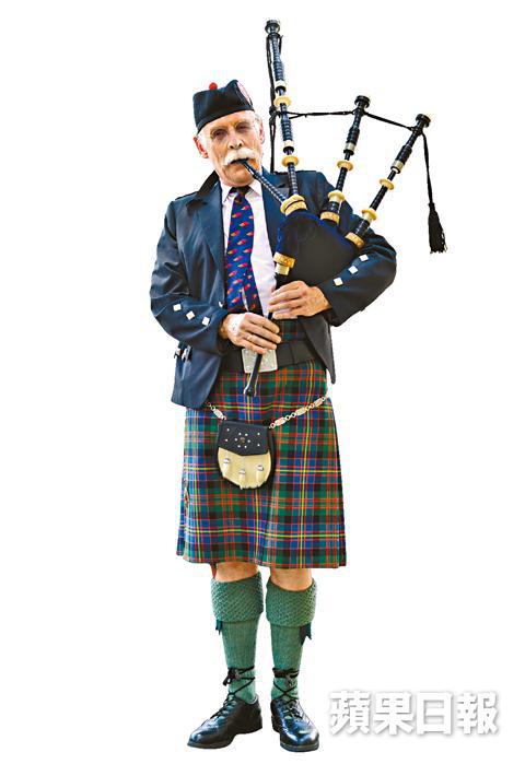 資深傳媒人Tim Hamlett原來也是風笛愛好者,手上風笛有逾百年歷史,由蘇格蘭工匠親手製造,黃白色部份是象牙。67歲的他是英格蘭人,八十年代來港工作,曾任職《南華早報》和《英文虎報》,現為浸大新聞系副教授。八年前才開始吹風笛,現在是香港聖安得烈風笛隊主席。這天,他示範獨奏《高地教堂》和《奇異恩典》,一身制服滿是文化內涵,裙子的方格花紋(Tartan)不是亂來的,是採自一支已結束的軍團Cameron Highlanders的方格花紋,腰帶扣圖案是蘇格蘭之花薊花。Tim說,雖然風笛只有九個音階,看似簡單但其實很複雜,音管眾多,空氣濕度和溫度都會影響音準。對於他來說,風笛是一種獨特的樂器,但並沒有強烈的感情成份,「或者蘇格蘭人聽到風笛會有所感動,想起當地風光。」Tim也提及前港督衞奕信不但是蘇格蘭人,也是風笛手。他現在是蘇格蘭阿伯丁大學校監,早前曾向港大餽贈蘇格蘭方格花紋,這Tartan以港大校徽顏色設計,並已於蘇格蘭格紋註冊局成功登記。