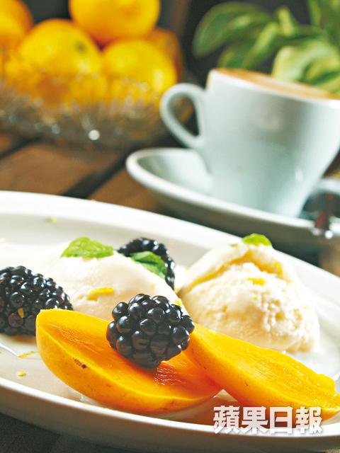 青檸1個、腰芒2個、黑莓6粒、薄荷葉4塊、豆腐雪糕適量