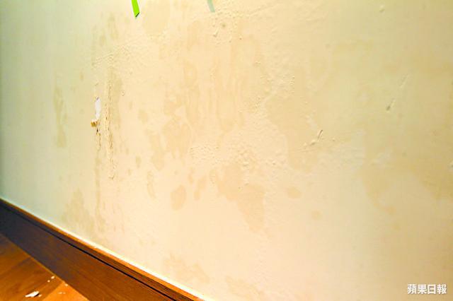 讀者黃先生以約1,300萬元買入大埔天賦海灣2期中層C室,新屋入伙滿心歡喜,點知收樓「谷鬼氣」!他展示單位內櫳「甩皮甩骨」,工人房外接大堂大門關不到,走廊牆身滲水,露台一邊沒有防水膠邊,更離譜是「細房天花有條裂紋,敲一敲,點知成塊批盪甩落嚟!」黃先生大鬧單位質素差,仲衰過公屋,正待發展商進行執漏。