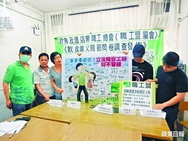 父親節也有不少爸爸要在工作中度過,飲食及酒店業職工總會聯同廚師權益大聯盟訪問了300名工友,發現飲食業工時長,近半受訪者每日與子女相處時間少於15分鐘,8成更感到被子女忽略。點心師傅宋先生育有一名7歲女兒,因工作關係,他每天與女兒相處時間只有10多分鐘,父女關係疏離甚至惡劣,更曾試過牽起女兒的手卻被甩開,被女兒視為陌生人。