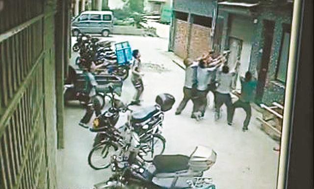 「快出來救人!」前日上午,隨父母租住在浙江寧海桃源街道的2歲半女童琪琪,坐在四樓窗台大哭,雙腿朝外,兩隻鞋掉了下來,正在樓下工作的一速遞公司員工見狀後,驚出一身冷汗,隨即呼叫同伴出來,當其餘七名員工跑出屋時,女童急墜掉下,千鈞一髮之際,八人下意識地迎上去伸手接她(圖)。結果女童安然無恙,伸手的八名快遞哥個個手臂受傷,其中一人手臂更腫得像饅頭。