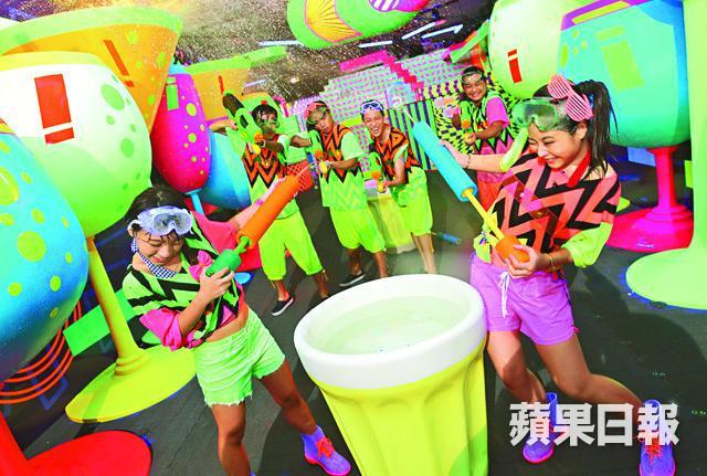 另外,海洋公園昨公佈明日起至8月25日舉行夏水禮,並逢周六及日增設夜場時間至晚上10時,以及設夜場優惠門票。三個濕身項目包括全港首創的「螢戰」,40名遊人穿越激光迷陣、噴泉等專區打水戰。「勁爆水彈陣」讓遊客發射水彈。另八米高的「瘋狂水滑梯」供遊人從梯頂極速滑過28米長的滑道。