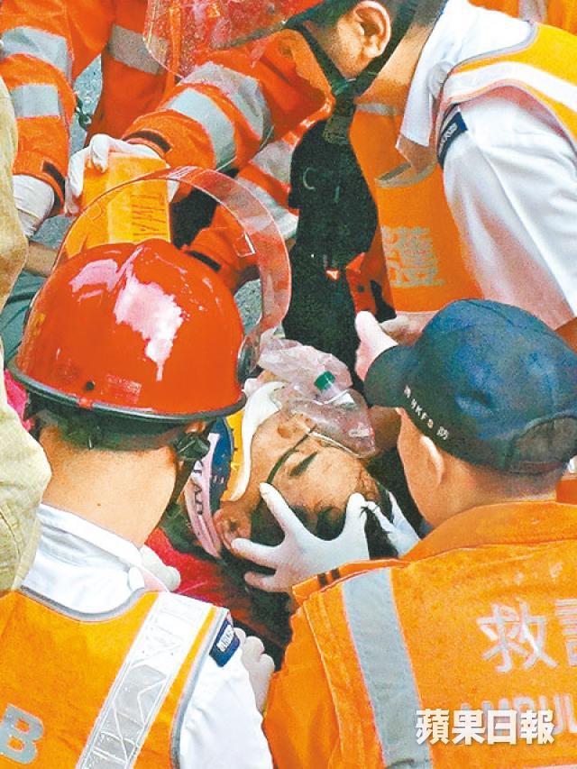 拖頭駕駛室遭防撞欄廢鐵壓着,陳被困車內,警方和消防員接報到場封鎖該條單程路面,但撬開車頭廢鐵,仍未能撥開部份插入車內的防撞欄,傷者痛苦呻吟。