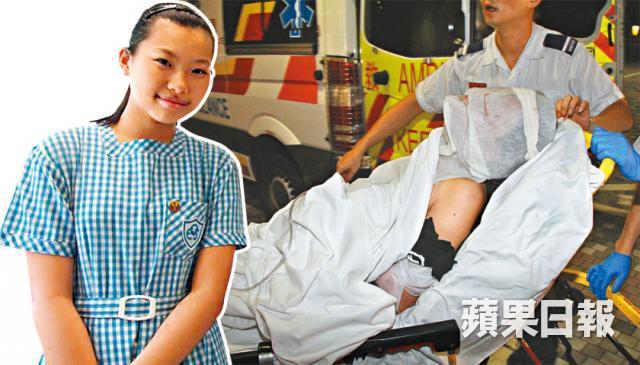 重傷的中三女生莊嘉敏(15歲),送院時臉部、雙手雙腿及臀部多處燒傷並鋪滿紗布及醫療面膜防感染。