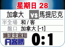 美洲金盃周日開鑼,打頭陣的是加拿大與馬提尼克對壘。馬提尼克雖名不經傳,但亦絕非烏合之眾,面對近年戰績每下愈況的加拿大有力製造小冷門,馬提尼克受讓可捧,敲「讓球主客和」[+1]「客勝」。(球賽編號:星期日28;有線61及201台明日5:30am直播)