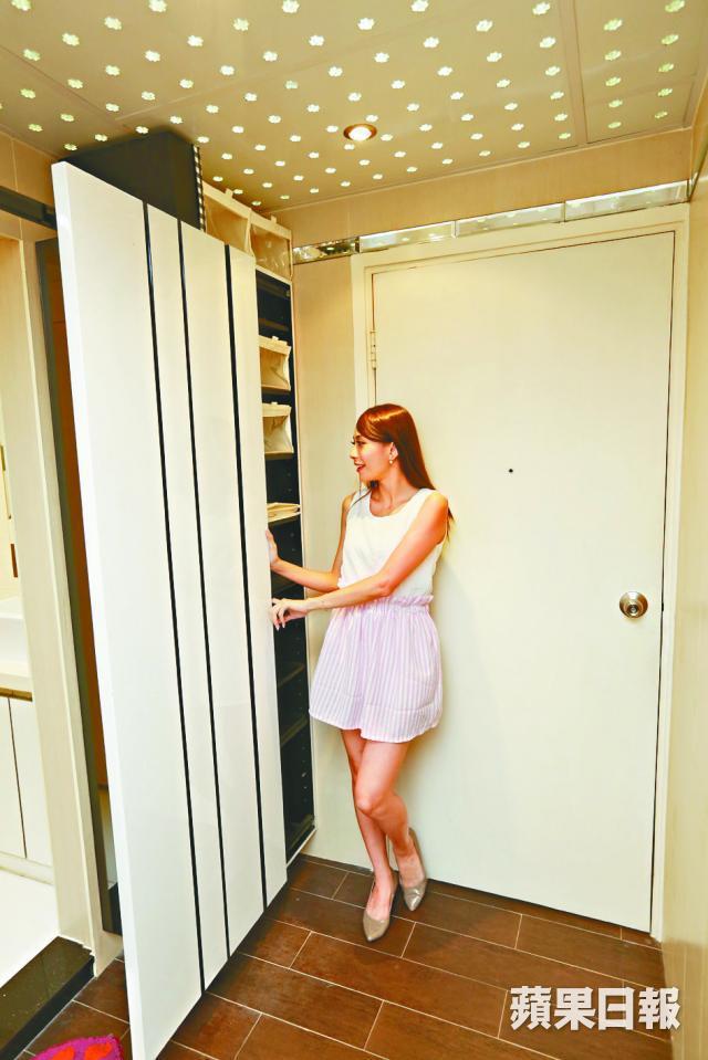 該單位採用開放式間隔,起居廳與寢區融和一體,適合兩口子居住。為善用空間,寢區大床床尾設衣櫃,玄關亦度身訂造高身鞋櫃。廚房用玻璃趟門,擴大起居廳的空間感。單位裝修不俗,有假天花燈槽,浴室潔具簇新,入牆家具新淨,廚櫃及工作枱面全新。不過,景觀則不能苛求,只能望對面馬路樓景,所以儘管單位只有細小窗戶,也關係不大。