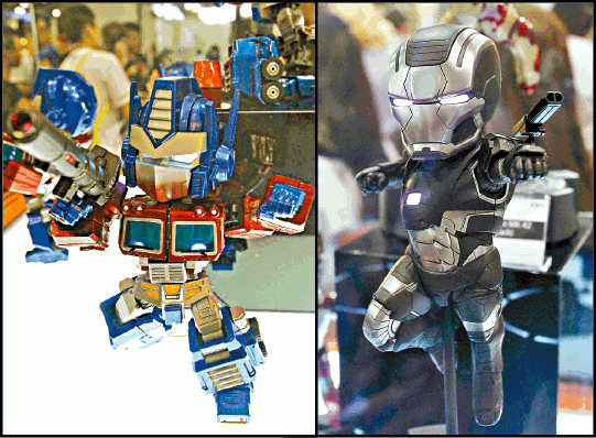 展商Kid's Logic今年推「Q版」Ironman手辦公仔,會場限定的3吋高一套三件裝全部售罄,現只能在場內預訂。另兩款各6吋高的變形金剛柯柏文及Ironman手辦公仔同樣熱賣,後者war machine版本料今日售罄,預計今年生意額較去年大增三成。