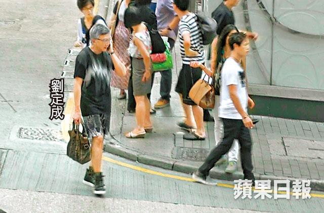【中環士丹利街】富商劉定成(劉公子)年前被裁定非禮及恐嚇男藝人罪成,𠵱家獲保釋外出等候上訴結果。前日下晝4點鐘,見劉公子同男伴現身中環士丹利街,着短褲嘅佢露出光管腳,之後入咗太平館餐廳食飯,兩個鐘後劉公子一出餐廳就掛住講電話,被冷落嘅男伴只好煲煙自娛。之後佢哋發現記者即時行到離行離列,劉公子仲同記者講:「我有乜好影箒?我去行街。」其後男伴先離開,劉公子就去置地行街。採訪、攝影:黃曉程