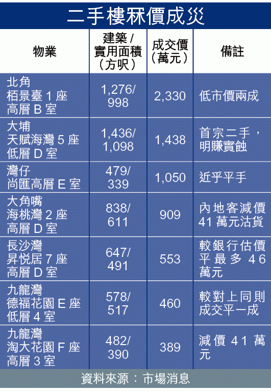 內地客亦「撤資」。消息稱,一組來自溫州的內地客,繼日前減價賣大角嘴帝𥧌.皇殿一伙後,昨再減價41萬元沽出同區海桃灣2座高層D室,成交價909萬元。單位2010年6月購入價850萬元。另灣仔尚匯高層E室,建築479方呎,實用339方呎,傳以1,050萬元沽出,原業主2011年4月以997.3萬元購入,扣除使費後近乎平手。