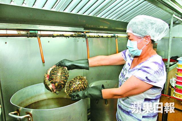 【本報訊】「鬍鬚佬」吳耀明創辦的海天堂被指出售發霉兼無龜板成份的龜苓膏,除引發退款潮,連帶曾與他就「海天堂」商標打官司的「大家姐海天堂」亦被牽連。「大家姐」吳玉娟昨宣稱店舖生意額大跌五至八成,她昨特意在傳媒面前示範如何鮮製龜苓膏(圖),澄清不會「濫造」龜苓膏,希望各界認清招牌。
