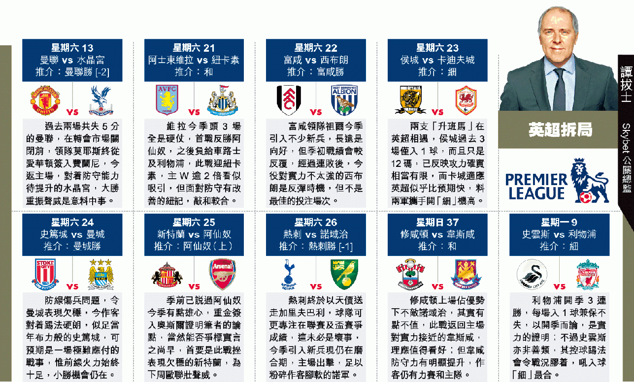 今周英超的焦點,相信是落在多位轉會市場關閉前加盟的新兵上面。其中由皇馬轉會阿仙奴的奧斯爾,會吸引不少球迷注視;這亦難怪,奧斯爾是當今世界球壇公認,其中一位最有能力的進攻中場,而他願意離開皇馬到兵工廠一「闖」,其決心是沒有疑問,只是會否急於上陣,要看領隊雲格的想法。
