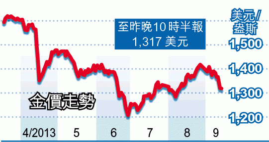 【本報綜合報道】投資者觀望美國聯儲局下周議息會議,市況轉趨平靜。連周四因擔心儲局收水而大瀉的貴金屬價格亦回穩,金價則反覆偏軟,仍守於1,300美元關之上。市場亦有傳聞指薩默斯可能會於下周獲提名接掌儲局,但白宮官員隨後否認,未對市況構成太大波動。