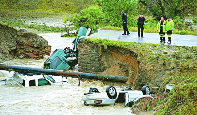 而科羅拉多州廣泛地區自周一起暴雨連綿,雨水沿着洛磯山脈東邊往山坡下多個城鎮匯聚,造成嚴重的水災,重災區博爾德、丹佛等地疏散數千名居民,至少三個小鎮被洪水圍困頓成孤島,國民警衞軍運送緊急物資到災區。