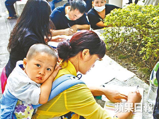 【本報訊】幼稚園爭位風潮遍及全港各區,除深受雙非學童搶學額影響的北區外,元朗、馬鞍山及美孚,多間定於昨日收表的幼稚園均大排長龍,甚至有排隊黨出沒「搵食」,以3,000元兜售頭位籌號。幼兒教育學者認為,目前社會已出現恐慌,即使個別地區學額充足,家長怕子女「冇書讀」也會照樣跟風排隊。