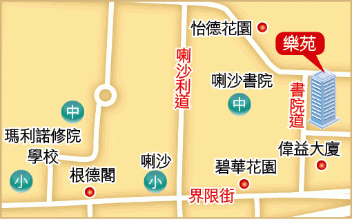 樂苑物業保養不俗,兩年前曾翻新外牆,樓梯公共地方潔淨,惟只設停車場,其他設施欠奉。住戶步出界限街及太子道西,有小巴及巴士穿梭各區。附近有喇沙小學、喇沙書院、瑪利諾修院學校等,書卷味濃。