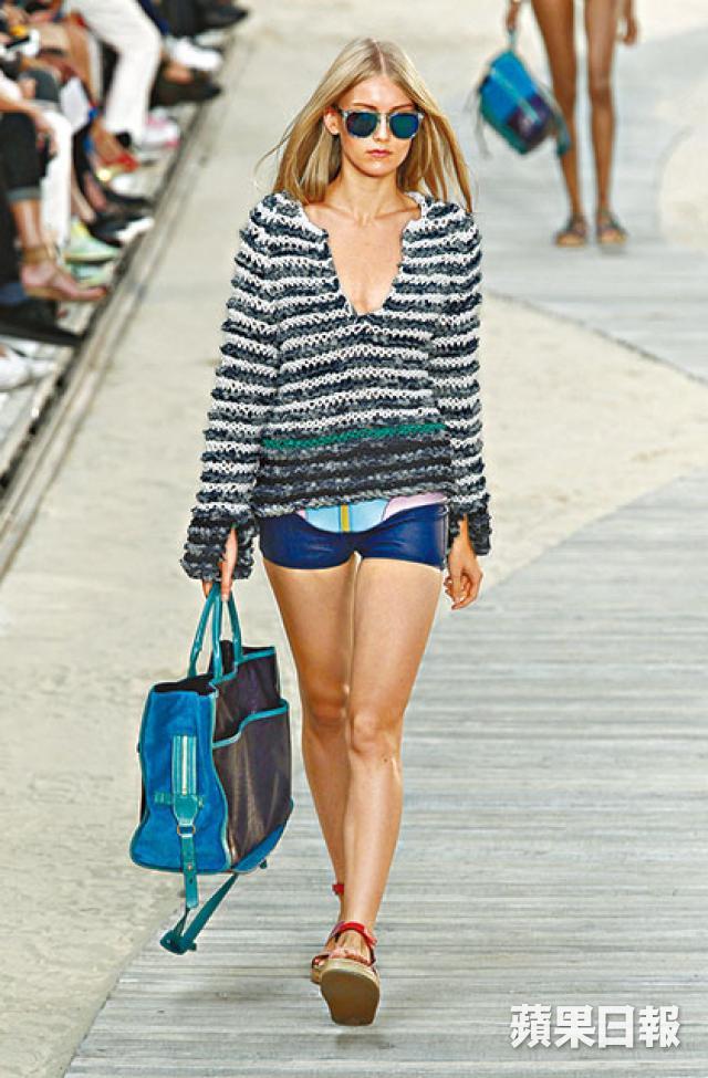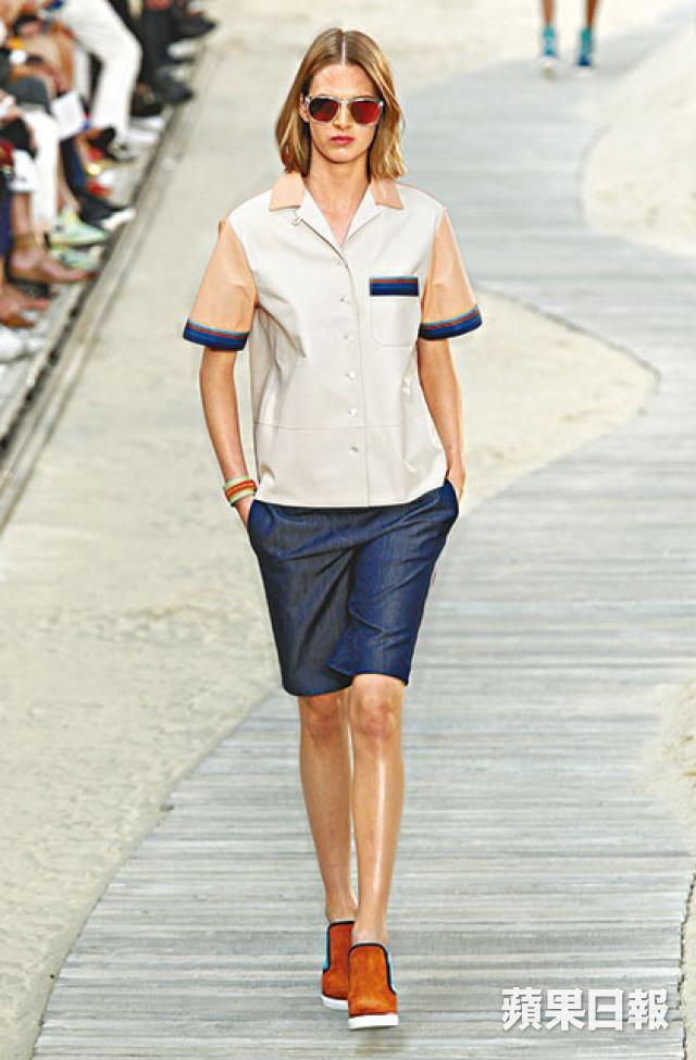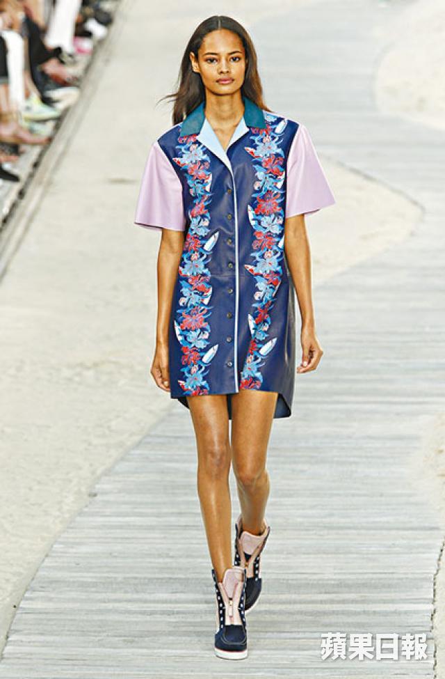 另外polo minidress、絲質Bermuda shorts、籃球背心minidress、track-pants、夏威夷花卉圖案tailoring設計、洗水丹寧衣料的街服,以及皮革bomber jacket等,全都充滿upbeat & youthful氣息。
